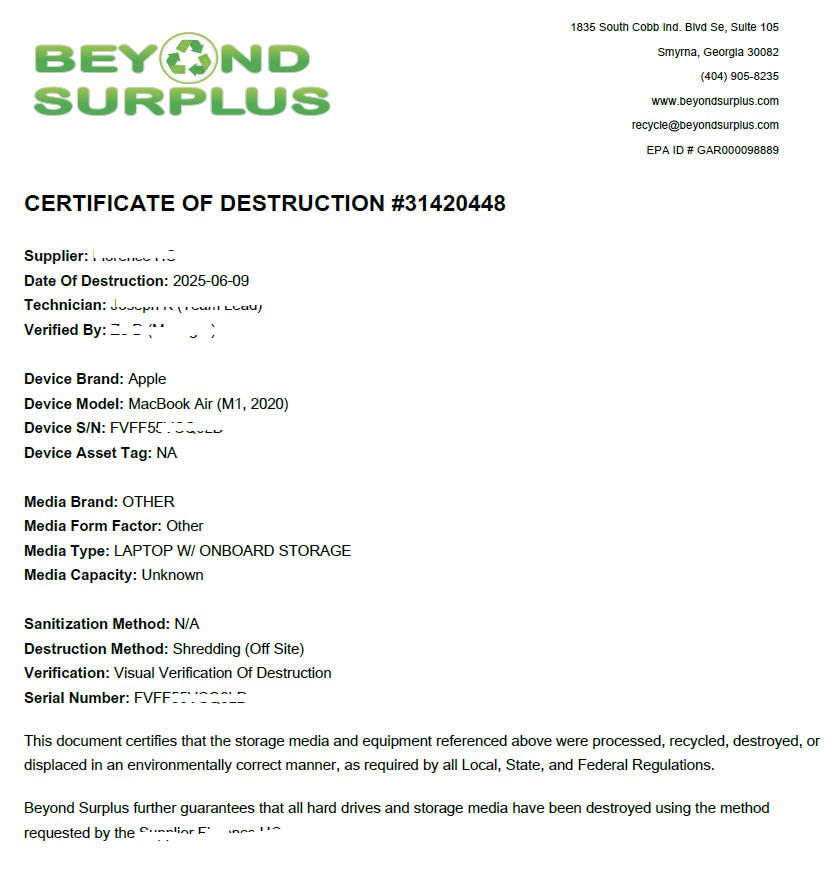 Beyond Surplus, Electronics Recycling, IT Equipment Disposal & Data Destruction